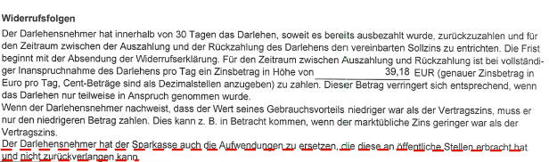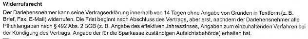 Wie schon in den Vertragsformularen des Sparkassenverbandes findet sich in den Widerrufsinformationen des Sparkassenverbandes als letztes der folgende Hinweis: