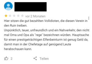 Clients often ask whether they have to put up with reviews at all. The BGH generally permits reviews (BGH “Spickmich” ruling of 23/06/2009 – VI ZR 196/18, ruling of 23/09/2014 – VI ZR 358/13 and ruling of 20/02/2018 – VI ZR 30/17). According to the BGH, entrepreneurs or freelancers must allow Google reviews of their business, because they generally also offer their services to the public. However, this ruling does not mean that all reviews have to be tolerated. You have the right to defend yourself against an unjustified review on Google.